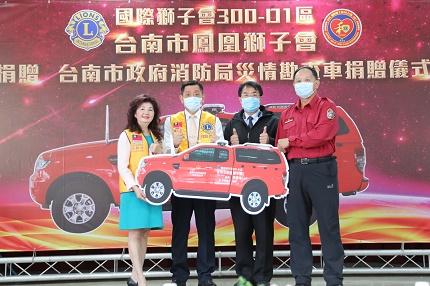 【記者賴建邦/台南報導】台南市長黃偉哲今(24)日上午出席台南市鳳凰獅子會捐贈台南市政府消防局災情勘查車1輛儀式暨台南市永康區二級低收入戶冬令送暖物資發放活動,由現任會長陳錦珠女士代表捐贈,並由市長黃偉哲代表市府受贈,並頒發感謝獎牌及獎座,感謝鳳凰獅子會的善行義舉不只提升消防救災效能,也造福台南市民朋友。台南市長黃偉哲表示,非常感謝鳳凰獅子會今日捐贈予市府消防局的皮卡災情勘查車,該車的涉水性能及配備優越,有助於消防弟兄勘災或救難時,盡速回報指揮中心,加快相關的人員與工作調度,搶險救災,守護市民朋友。此外,黃偉哲也特別感謝各區獅子會的獅兄、獅姊常行善舉,像是捐贈物資、口罩、護目鏡、防護衣給予市府,幫助市民做好防疫工作,也希望今日之善行能拋磚引玉,喚起社會各界響應熱心公益。台南市政府消防局表示,台南市鳳凰獅子會現任會長陳錦珠女士秉持回饋鄉里的熱誠,今年7月得知消防局第五大隊鹽行分隊轄區,因部分地區地勢較為低漥,易有淹水之災情發生,故慷慨解囊捐贈價值約新台幣120萬元的災情勘查車等裝備器材,除選用皮卡車輛具備涉水性能且兼具橡皮艇拖掛救災功能,並配備有LED警示燈、警報器、拖船勾及無線電等裝備,不但充實災害勘查搶救之效能,更增進消防局之水域救生能力,足以為樂善好施的義行典範。今日出席與會來賓有,市議員林燕祝、李鎮國、林?乙、永康區區長張睿民等人,一同見證災情勘查車的捐贈儀式,感謝民間團體將愛心化為行動,給予市府及市民朋友最實質的支持。