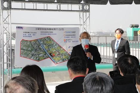 【記者陳姿伊/台南報導】中央政府推動能源轉型不遺餘力,台南歸仁區的沙崙智慧綠能科學城,是台灣推動5+2創新產業-綠能前瞻產業基地,目前經濟部、科技部及中研院所屬核心區建物及市府推動各項周邊配套措施均已陸續完工,科學城的基礎樣貌逐步成形,行政院長蘇貞昌今(29)日特地南下視察各項建設工程和研究成果,台南市長黃偉哲、立法委員王定宇以及市議員郭鴻儀也一併陪同,一一聽取簡報。行政院長蘇貞昌表示,推動能源轉型是國家積極推動目標,在政府部會積極努力下,目前整體再生能源累積裝置容量為9,119 MW,達成2025年30 GW目標的30.2%,「沙崙智慧綠能科學城」以創能、節能、儲能和系統整合四大主軸,為驅動台灣下世代智慧綠能產業成長重要研發基地。蘇貞昌說,科學城不僅是實現政府「5+2產業創新計畫」綠能產業的指標性行動方案,更是「前瞻基礎建設計畫」綠能建設中重要項目,且提供從研發、試量產、測試到驗證等階段,垂直整合一條龍服務,並結合方圓45公里內科學園區及工業區,形成產業聚落,提升綠能產業競爭力,以「研發-進駐-擴散」發展,活化場域應用,帶動南部綠能科技產業群聚,期許未來成為亞太綠能發展中心。台南市長黃偉哲表示,首先感謝蘇院長還有行政院的幫忙,從2016年開始,蔡總統指定沙崙綠能園區為5+2園區後,沙崙就發展就非常快,如果說南科是從甘蔗園裡長出來的科學園區,沙崙可說是從一堆雜草裡長出來的綠能科技城。黃偉哲說,蘇院長曾指示,規劃科學園區,要特別要規劃生活機能的區域,要能夠讓在園區工作的年輕同仁,能夠在園區當地生活,不需要為了進市區耗費許多交通的成本,因此在沙崙園區旁邊,南市府特別跟成大合作,開闢健康園區,設立醫院,旁邊還有沙崙國中國際雙語學校,另外還有三井outlet,還有會展中心,希望讓沙崙綠能科技城,成為一個兼具生活機能和產業發展的一個快速發展的新市鎮。黃偉哲強調,未來沙崙園區也將從研究的場域也變成到實際生產的場域,經濟部的沙崙產業園區,也開始要規劃了,這將大幅提升南部地區經濟發展動能,沙崙園區成為一個綠能發展的研究重鎮,從中研院、工研院、科技部、到經濟部還有成大跟台南市政府一起,中央跟地方攜手,讓沙崙綠能科技城能夠再升級為2.0,為台灣的科技產業帶來卓越的貢獻。台灣在後疫情時代,經濟逆勢看漲,南科已是車用晶片及零組件、半導體、精密機械、光電等生產重鎮,台南經濟要持續成長,需要在南部裝設第二顆引擎,沙崙智慧綠能科學城將繼南科後成為帶動台南經濟發展的另外一顆發動引擎,未來台南市政府將以永續智慧城市為發展藍圖。黃偉哲也感謝蘇院長支持,並指示經濟部提供先期規劃費全力支持推動開發健康與沙崙產業雙園區,打造智慧綠能科學城2.0,進而帶動台南整體住商及產業發展,並用數據驅動智慧創新、精準醫療與產業製造,共同打造沙崙智慧綠能科學城成為國際級典範宜居城市。