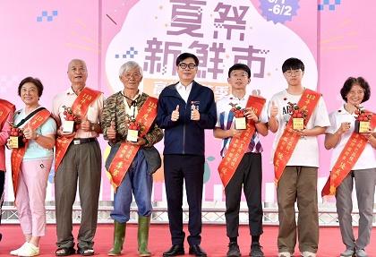 【記者馬源朝/高雄報導】夏祭新鮮市第一彈「2024高雄鳳荔季」(1)日、明兩天在大樹姑山倉庫熱鬧登場。高雄市長陳其邁在活動開幕式中,賣力推銷大樹玉荷包荔枝及金鑽鳳梨美味可口又養顏美容,好品質更外銷到包括美國、加拿大、紐西蘭和澳洲等國家,並期許明年大樹玉荷包及金鑽鳳梨皆能大豐收!陳其邁致詞大讚大樹玉荷包與金鑽鳳梨富含維他命C,養顏美容,是夏天最好的選擇。他打趣說,吃了皮膚都會變很細緻,更誇台下的大樹鄉親就是因為吃了玉荷包和金鑽鳳梨,所以每個人都水噹噹、大帥哥。陳其邁表示,今年玉荷包雖產量減少,但價格不錯,希望明年產量可以增加,滿足大家的需求。他也肯定市府農業局的努力,連結超市等通路行銷大樹鳳梨,方便消費者就近選購,同時推行外銷計畫,把高雄農產品推上國際舞台。在開幕式上,陳其邁同時頒獎表揚在今年度高雄市玉荷包荔枝與金鑽鳳梨品質及果園評鑑競賽中脫穎而出的得主們。他隨後到現場各攤位與攤商、民眾互動,品嘗在地好滋味,也在農業局的引導下,參觀姑山倉庫鳳梨館,和各種鳳梨意象設施合照。活動主辦單位大樹區公所表示,活動現場規劃文創市集、街頭藝人、闖關遊戲及DIY手創空間等,還有高雄農特產品展售,歡迎市民朋友一同共襄盛舉,活動資訊可至高雄市大樹區公所臉書粉絲專頁查詢。