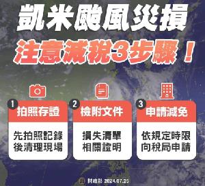 【記者葉炎德/台南報導】受凱米颱風及外圍環流影響,部分地區災情嚴重,臺南市政府財政稅務局提醒民眾在清理及復原家園時,要注意自身安全,倘車輛、房屋或土地等財產受損或無法營業,可適用減免稅捐規定,請把握「拍照存證」、「檢附文件」及「申請減免」三步驟,於災損發生之日起30日內,向當地稅捐稽徵機關提出使用牌照稅、房屋稅、地價稅及娛樂稅等減免申請。 財稅局說明,汽車或151cc以上機車使用牌照稅係按實際使用日數計徵,因受損需修復始能使用,或無法再使用,記得向監理機關辦理停駛、報廢等手續,並檢具維修之收據、發票等證明文件,申請減徵及退還無法使用期間溢繳稅款。 倘房屋受損面積達3成以上不及5成者,房屋稅減半徵收,毀損面積達5成以上,必須修復始能使用者,免徵房屋稅;土地因山崩、地陷、流失、沙壓等環境限制及技術上無法使用之土地,地價稅全免;另外,屬查定課徵娛樂稅之業者,可申請扣除因災害致未營業之天數,按比例核減當期之娛樂稅。 該局提醒,為免外出奔波,請市民朋友多加利用財政部稅務入口網(https://www.etax.nat.gov.tw)線上申辦服務或就近向該局所屬分局及11處「多點.跨區.全功能稅務櫃臺」洽辦;另個人或營業財物損毀,涉及所得稅、營業稅、貨物稅或菸酒稅之減免,亦可利用該網址向國稅稽徵機關提出災害損失減免申請,倘有任何疑問,歡迎於上班時間撥打免費服務電話0800-000-321洽詢,將有專人竭誠為您服務。