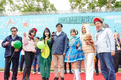 【記者馬源朝/高雄報導】「2025高雄富邦馬拉松」活動首日由3公里休閒組打頭陣,緊接著最速恐龍爭霸賽於高雄國家體育場戶外草皮舉行,市長陳其邁(11)日偕同富邦人壽執行副總經理周資為宣布開賽後,恐龍大賽熱鬧開戰,立法委員邱議瑩、許智傑與黃捷也親自到場共襄盛舉。陳其邁表示,感謝跑者熱情響應野性呼喚,今年的最速恐龍爭霸賽,報名人數較去年倍增,來到現場宛如侏羅紀公園,約230隻可愛的恐龍參加比賽,希望民眾踴躍參與、發揮創意與想像力,並預祝所有參加的朋友玩得開心,能夠在最速恐龍爭霸賽奪冠。陳其邁表示,高雄從2010年開始舉辦城市馬拉松,尤其高雄富邦馬拉松非常受到市民朋友歡迎,也吸引許多國外好手來到高雄。今年總共有43個國家、326位外籍選手參加,意味高雄富邦馬拉松也逐漸打開國際知名度,如同其它國家的城市馬拉松享譽盛名,全馬或半馬都是認識高雄最快速、最好的方式,沿路會經過許多重要知名景點。尤其1月初,北部有時非常濕冷、陰雨綿綿,高雄氣溫大約為14至15度,是全台最適合跑馬拉松的地方,也希望全台灣所有朋友都能夠藉由高雄富邦馬拉松比賽到高雄,不僅跑馬拉松,也藉此進行各式各樣的觀光旅遊活動。隨後市長陳其邁、立委許智傑也換上恐龍裝,一起參與最速恐龍爭霸賽,並和之前在大港造筏賽事中小贏他的「FRM台灣獼猴隊」再度一較高下,賽後陳其邁也笑稱,恐龍路跑真的很有趣,但平時一定要多運動才行,也邀請全台民眾到高雄觀光旅遊,除了有山海河港美麗景致外,更有許多有趣的活動及美食,感受城市魅力與冬日宜人天氣。「2025高雄富邦馬拉松」今年以「Run to Love. Love to Run 越跑越愛 越愛跑」為口號, 11日上午7點30分,3公里休閒組正式起跑,今年創意造型以「動物」為主題,如哺乳類動物、海洋動物、鳥禽類等等,結合高雄市區域內有知名的壽山動物園,鼓勵選手們發揮創意,在賽道上展現高雄友善動物的面貌。創意造型獎第1名將獲得五千元獎金。另一矚目焦點,是最速恐龍爭霸賽,共吸引約230隻大小恐龍報名,參賽者穿著自行準備的恐龍裝,在國家體育場戶外草皮上衝刺競速,場景彷彿侏儸紀公園。去年在大港造筏賽事中小贏陳其邁市長的「FRM台灣獼猴隊」,這次改換上恐龍裝,誓從水中稱霸到陸上。這次最速恐龍爭霸賽也分男女組,冠軍將分別獲得八千元獎金,每隻恐龍跑姿型態不盡相同,民眾笑聲不斷,小朋友們也爭相與恐龍合照,現場十分歡樂逗趣。高雄富邦馬拉松全馬、半馬賽程明(12)日登場,除了賽事路線將高雄山海河港的美景盡收眼底外,也提供完善的軟硬體服務,包含16個補給站,確保跑者能穩定補給,以及隨時提供跑者們緊急醫療服務。所有工作人員及志工堅守崗位守護跑者,要讓所有參賽跑者,能在最舒適安全的環境挑戰自我,跑出最佳成績,享受高雄富邦馬拉松賽事。更多賽事動線、交通管制、輕軌延駛以及活動資訊,請上「高雄富邦馬拉松」FACEBOOK粉絲團或賽事官網(https://khm.com.tw/)查詢。