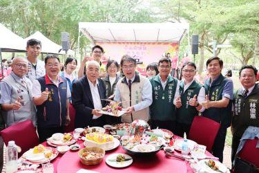 【記者葉炎德/台南報導】台南市政府觀光旅遊局主辦,民眾熱情搶桌的「2025台南總舖師四季辦桌-春季場」(26)日於德元埤荷蘭村盛大開席,台南市長黃偉哲親自到現場與100桌民眾共同揭曉春季饗宴菜單,並大快朵頤;總舖師所準備的每一道佳餚皆融合逾25年的辦桌經驗與創意巧思,無論視覺還是味覺,皆為參與民眾帶來滿滿驚喜與感動。立法委員陳亭妃,市議員沈家鳳、陳秋宏、朱正軒,以及台南在地各觀光公協會代表等貴賓紛紛出席大啖辦桌美食。市長黃偉哲表示,台南一年四季都出產豐富的物產,而且各地區也都有不同的特產,如柳營的牛奶、關廟的鳳梨,都是當季盛產又美味,正適合品嚐。本次春季場辦桌一開放報名就秒殺,希望夏季場能增加桌數滿足大家的熱情,同時也期盼民眾在品嚐最新鮮、最澎湃的台南美味之餘,也一同感受深厚的台南辦桌文化底蘊。觀旅局表示,台南總舖師四季辦桌活動邀集來自台南各地的總舖師,以獨特無菜單料理形式,融合四季當令食材與在地風土特色,展現辦桌文化的多元面貌,並傳承台南特有的宴席精神,為食客帶來耳目一新的味蕾饗宴。四季辦桌春季場開放報名後迅速額滿,足見台南辦桌美食深受歡迎。用餐後,食客亦可漫步德元埤欣賞荷蘭風車、巨型木鞋與鬱金香等特色打卡點,留下美麗倩影,為這段美好時光留下紀錄。觀旅局長林國華指出,四季辦桌春季場由洪廚宴席洪俊男與田園庄宴席陳志安聯手操刀,運用來自台南當令食材如後壁區稻米、柳營區鮮奶與紫茄、六甲區筍殼魚、將軍區蘆筍與紅蘿蔔、七股區白蝦及指定食材台灣鯛,搭配龍蝦、鮑魚、紅蟳等高檔海味,精心打造10道兼具創意與美味的佳餚。為響應辦桌活動,德元埤荷蘭村特活綠小舖特別規劃「小小總舖師來辦桌」活動,讓大小朋友從「認識辦桌文化」出發,透過分組合作和感官藝術遊戲,激發創造力與團隊合作精神,集思廣益發想最響亮的菜餚名,一起完成一桌好菜。另外也特別開放獨木舟體驗,不僅能近距離欣賞德元埤靜謐美麗的埤塘景致、觀賞鳥類輕掠水面的優雅姿態,更能感受清風吹拂與水波微盪的自然節奏,在樂趣之中達到身心放鬆的效果。觀旅局補充,感謝各界對四季辦桌春季場支持,「台南總鋪師四季辦桌-夏季場」也預計將於7月辦理,而台南精彩活動不間斷,台南雙層巴士盲盒旅遊(5/3-11/15)、2025 Tainan May Jam 台南五月音樂季(5/3-5/4)等陸續展開,歡迎鎖定「台南旅遊網」及「台南旅遊粉絲團」查詢掌握最新消息。台南旅遊網:https://www.twtainan.net/台南旅遊粉絲團:https://www.facebook.com/traveltainan