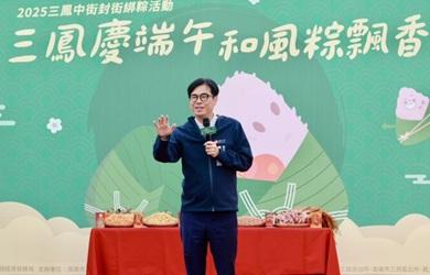 【記者林秀雲/高雄報導】端午節將至,高雄知名南北貨市集三鳳中街延續傳統,舉辦「三鳳慶端午 和風粽飄香」百人封街包粽活動。繼去年與東南亞文化交流後,今年首度與日本台灣交流協會高雄事務所合作,分享日本端午粽的特色與文化內涵。高雄市長陳其邁(10)日親自到場體驗包粽樂趣,並表示三鳳中街秉持公道價格與美味食材,展現高雄實實在在的精神,是市民佳節採購首選,歡迎大家把握機會前來感受節慶氣氛。陳其邁致詞指出,自擔任立法委員以來,他年年參與三鳳中街的端午包粽活動,三鳳中街位於高雄火車站周邊,是城市的重要門面,更是高雄人的「精神堡壘」,陳其邁打趣叮嚀,下任市長除了每年都要來包粽外,更要持續爭取預算,推動三鳳中街的建設。活動現場氣氛熱烈,陳其邁與多位民意代表在老闆娘示範下,親手包入香菇、干貝、蝦米等豐富餡料,製作出飽滿美味的傳統粽子。現場也展示日式風味粽,象徵台日文化交流的融合,並邀請高雄日僑學校學生體驗台灣包粽文化,透過親手製作認識傳統節慶之美。經發局表示,今年活動分兩梯次、共開放200組參與,報名迅速額滿,反應熱烈。市府將持續投入資源,協助三鳳中街及在地商圈發展,打造更優質的購物環境,成為商圈永續經營的堅強後盾。