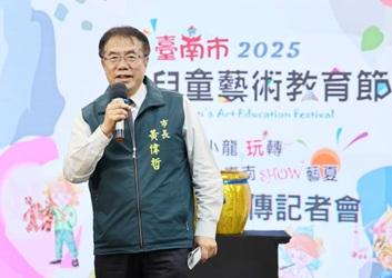 【記者賴建邦/台南報導】「小龍玩轉.台南SHOW藝夏」2025台南市兒童藝術教育節來了!台南市政府規劃以「藝起玩、賞、學、武、SHOW」五藝為主軸,自4月至8月期間陸續推出多元藝術活動,(27)日於永華市政中心舉辦宣傳記者會,市長黃偉哲強調,期盼讓每位孩子皆能在藝術的滋養下,充分展現自信與創意。市長黃偉哲表示,台南市是文化薈萃之都,更是藝術教育的重要搖籃,台南獨有的兒童藝術教育節今年已邁入第6年,透過以「美學創思力」列為五大教育願景之一,結合深厚的在地文化,持續創新發展精進,他也期盼以學生為出發點,提供孩子們發揮創意的舞台,勇敢展現藝術才能,讓台南的孩子有別於其他城市孩子,並從學習、觀賞與表演過程中獲得充足的藝術養分。市長黃偉哲強調,透過將藝術教育帶入校園可以發揮兩個層面作用,首先是培養欣賞能力,再來是發掘藝術潛能,讓有天分、有興趣的孩子能盡情發揮,而兒童藝術教育節不僅已深深扎下深厚根基,更讓學生在舞蹈、音樂等各方面,於全國競賽中大放異彩,而未來市府也將持續推動深耕藝術教育活動,盼望讓所有市民能感受到藝術教育氛圍,融合於大眾日常生活。教育局表示,今年的活動別具意義,為首次促成師生與青年藝術家攜手合作,共同創作大型藝術作品,並結合兒童文學得獎作品,更在市圖新總館展出,展現豐富多元的藝術能量。此外,為培養學生創思美學力,除平時藝術教育課程涵養外,在全國唯一的兒童藝術教育節的五藝系列活動,提供學生藝術創作發表空間,促進兒童視角對話及建構學生美感知能。教育局指出,此次活動多元豐富,包含「藝起玩」-跟著朵朵闖通關,有藝術創意市集、藝術體驗及闖關互動,滿足學生動手玩樂趣與挑戰成就感,另「藝起賞」-創意美術作品展,為本年度首推學生與本土青年藝術家跨域共創作品,而另一亮點則為推行多年深獲好評的「小黑琵圖文徵件」,將於市立圖書館新總館共同展出獲獎徵圖及童詩作品,此外,「廣達游於藝」巡迴成果展,也持續邀請師生共同參與。教育局補充,今年規劃的「藝起學」親子夏令營,由本市藝術輔導團教師規劃課程帶領親子走讀在地文物,透過結合實境拍攝、AI工具進行影像與音樂之數位藝術創作,另更擴大辦理校數至8校12場次。另外,今年兒童藝術教育節精彩系列活動將陸續推出,廣邀全國各地民眾與學生,踴躍前來台南市參與這場盛夏藝術教育饗宴,相關活動細節將持續發表並公告於「臺南市兒童藝術教育節」粉絲專頁。記者會邀請永康區三村國小學童帶來創意音樂舞台劇表演,透過進行直笛合奏、舞蹈、戲劇跨域演出,展現兒童藝術教育的豐碩成果與多元風貌。市議員沈震東、立委林俊憲服務處代表也到場表達支持。