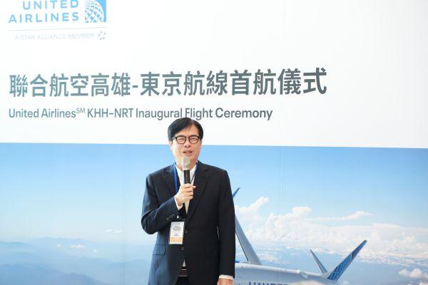 【記者林秀雲/高雄報導】美國聯合航空「高雄-東京」航線正式起航,聯合航空也是首間在高雄國際機場設點的美籍航空公司,高雄市長陳其邁與美國聯合航空Marcel Fuchs海外銷售董事總經理、美國在台協會高雄分處長張子霖(Neil Gibson)處長等人共同見證歷史性的一刻。陳其邁表示,聯合航空的加入,讓高雄前往美國主要城市更加方便,前往日本時也多一個航班選擇,陳其邁也誠摯邀請更多海外旅客搭乘此航線,親身感受高雄多元豐富的城市魅力。陳其邁表示,過去高雄市民若要前往美國,往往須先搭車至桃園出發,再經由舊金山或加州等地中轉,整趟旅程常需花費兩天時間。如今透過聯合航空高雄直飛東京的航班,可在東京銜接前往美國主要城市,非常便捷。東京長年為高雄航空站最受歡迎的國際旅遊目的地之一,這條航線具高度競爭力。聯合航空看好高雄潛力,在全球航空業復甦之際成為首家進駐高雄的美籍航空公司,顯示對南台灣發展的高度信心。此次新航線連結台灣(高雄)、日本(東京)與美國(舊金山)三地,不僅服務南部旅客,也為高雄帶來更多國際觀光與商務交流的契機,並與如台積電等高科技產業形成良好互動,有助提升城市國際能見度。隨著高雄國際航線網絡持續擴展,市府將持續與航空公司、觀光產業及中央單位攜手合作,強化機場軟硬體服務,提升旅客接待能力,讓高雄成為南台灣對外連結的核心門戶,進一步推動城市經濟發展與國際形象全面升級。眾所期盼的美國聯合航空「高雄-東京」航線(12)日正式起航,聯合航空也是首間在高雄國際機場設點的美籍航空公司,高雄市長陳其邁與美國聯合航空Marcel Fuchs海外銷售董事總經理、美國在台協會高雄分處長張子霖(Neil Gibson)處長等人共同見證歷史性的一刻。