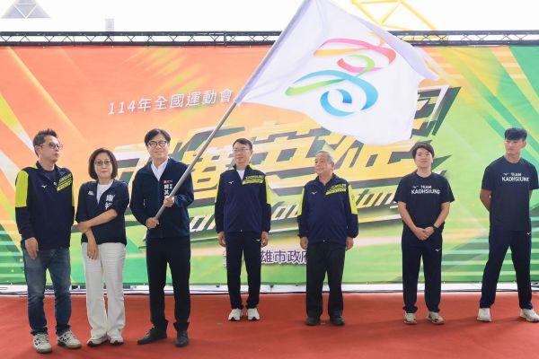 【記者陳姿伊/高雄報導】114年全國運動會將於10月18日至23日在雲林縣舉行,高雄市派出超過800名選手及隊職員,與各縣市競逐34項競賽獎牌,截至目前已累積奪下7金10銀10銅,展現優異實力。市長陳其邁(1)日親自為代表隊授旗,勉勵隊員旗開得勝、再創佳績。陳其邁表示,市府培訓選手不遺餘力,112年共頒發獎金近4,600萬元,今年投入培訓經費750萬元,並加碼補助旅宿及交通,總經費也隨之大幅提升;同時引進運動科學照護,投入約1,000萬元,協助選手維持最佳狀態,展現市府對體育發展的重視。此外,高雄已完成及興建中的運動中心合計達15座,鼓勵民眾養成規律運動習慣,呼籲每天至少運動30分鐘,不僅有助控制體重,也能強健體魄,提升生活品質。他指出,市府積極改善運動設施、推廣全民運動,中正體育場已改建為苓雅運動園區,多元化運動場域,提供慢跑、極限運動等多樣選擇,讓市民享有更佳運動環境,並強調未來將持續精進設施、推廣運動風氣,打造健康城市。授旗儀式上,陳其邁首先揮舞市旗,授予代表隊總領隊、運發局局長侯尊堯及體育總會理事長許文宗,再傳遞予射擊金牌選手李沛晴及跨欄金牌選手謝元愷。運發局表示,截至9月底,高雄已奪得7金10銀10銅佳績,包括射擊25公尺手槍團體賽、雙不定向飛靶團體賽、25公尺快射手槍團體賽及空手道男子組個人對打第四級等。此次代表隊中,游泳、跆拳道、舉重、自由車等項目預期將有佳績,排球、壘球、手球、鐵人三項、柔道、擊劍及空手道等也都是奪牌熱門。目前全運會已有多項提前賽事展開,18日開幕典禮後賽事將進入高潮,邀請市民朋友熱情應援,一同為高雄選手加油打氣。