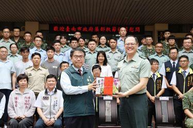 【記者賴建邦/台南報導】中秋佳節將至,台南市長黃偉哲(1)日前往台南市後備指揮部,慰勞官兵辛勞,並親自致贈慰勞金及農特產品禮盒。黃偉哲表示,國軍弟兄姊妹長期堅守崗位、保家衛國,特別是在丹娜絲颱風期間,第一時間出動人力與機具投入救災,協助居民重建家園,充分展現「軍愛民」的精神。他也特別代表市府及全體市民,向國軍表達誠摯的感謝,並提前祝福全體官兵中秋佳節平安順心。黃偉哲指出,近年來台南受登革熱疫情及多起風災侵襲,尤其此次丹娜絲颱風災情嚴重,感謝國軍始終在關鍵時刻挺身而出,迅速投入災區支援。此外,海巡署偵防分署台南查緝隊近日在例行護漁任務中,成功查獲超過700公斤毒品,有效守護社會安全,也讓市民倍感安心。黃偉哲進一步表示,中秋象徵團圓,但國軍仍堅守崗位、默默奉獻,令人敬佩。台南市自去年起推動「敬軍月」,並逐年擴大規模,邀請在地商家響應優惠措施,以實際行動表達市民對國軍的敬意與支持。未來市府也將持續配合中央政策,強化城市韌性與地方防災能量,成為國軍最堅實的後盾。包括台南市後備指揮部指揮官林嘉申上校、空軍第一聯隊長廖伯文少將、台南市軍人服務站站長劉可雲,民政局局長姜淋煌、北區區長潘寶淑、七股區長李佳隆、將軍區長張介軍、北門區長林建男、後壁區長李至彬、鹽水區長陳文琪,以及市議員陳怡珍等人皆到場,表達對國軍的關懷與敬意。