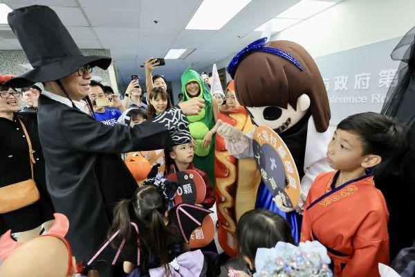 【記者陳姿伊/高雄報導】「不給糖就搗蛋!」(21)日高雄市政會議開始前,精心穿戴萬聖節服裝、造型的小朋友及家長,開心與變裝成動畫電影裡隊長造型的陳其邁市長互動,藉此預告市府教育局舉辦的「2025高雄萬聖節」,10月31日至11月2日將在衛武營國家藝術文化中心登場。陳其邁表示市府會做最好的準備,活動將比往年更精彩,來高雄衛武營過萬聖節是唯一選擇,歡迎全國爸爸媽媽小朋友一定要來、不要錯過。陳其邁說,今年萬聖節活動活動延續去年熱潮,22公尺巨大南瓜再度出沒,持續推出絢麗「南瓜燈光秀」,從270度升級為360度,光影技術與創意場景更加壯觀。同時,舉辦場地衛武營藝文中心擁有寬闊空間及便捷捷運。此外,11月1日將與小朋友期待的天團六福村墓碑鎮團隊舉行遊行活動,現場也發送限量1萬個充氣手環。教育局在市政會議上,簡報萬聖節活動規劃情形,除了延續超人氣「大南瓜」話題,今年將擴大規模結合在地學校與社區參與,規劃萬聖節市集、創意裝扮遊行、氛圍佈置及主題攤位等。其中,特別結合高雄市觀光局「Wild Wild野生活」及衛武營「鬼才來擺攤」等活動,融合戶外文青風與神秘鬼怪風主題,規劃超過100攤市集。教育局鼓勵參與活動的民眾,搭乘大眾運輸工具前往。民眾可上「雄愛學-高雄市政府教育局」臉書粉專查詢活動資訊。另外,韓國女團BLACKPINK演唱會於上週末圓滿落幕,期間市府警察局、交通局、高捷公司全力疏運;經發局、文化局支援周邊活動;運發局協助場地作業;環保局維護環境整潔,陳其邁市長對上述單位的努力表達感謝。