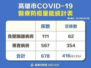 【記者陳姿伊/高雄報導】高雄市(2)日公布新增1,758例COVID-19本土確診個案,盛行率33.73%。國內疫情趨緩,自12月1日起已放寬戴口罩等防疫措施,但建議高風險脆弱族群及有症狀民眾仍應戴好口罩,保護自己也維護他人健康。12月3日捷運美麗島站、捷運三多站將開設「莫德納次世代BA.4/5雙價疫苗」接種站,目前尚有1,000個名額,欲接種者請速預約,現場限量開放隨到隨打。統計高雄市65歲以上長者如完成3劑疫苗且確診後接受Paxlovid抗病毒藥物治療,死亡率最低。衛生局提醒,接種COVID-19疫苗可有效預防感染後重症、住院及死亡風險,65歲以上長者及免疫不全、洗腎、癌症等高風險族群死亡個案中,超過4成未接種任何一劑疫苗。目前各疫苗廠商已經開發及生產次世代疫苗作為追加劑使用,未來恐無法繼續供應基礎劑型,請尚未接種基礎劑(第1、2劑)接種之市民朋友應儘速完成接種,避免後續無可用劑型供民眾接種。欲接種COVID-19疫苗者,可透過高雄市COVID-19疫苗合約院所查詢系統https://vaccine-query.kchb.gov.tw 查詢各類疫苗接種資訊(含兒童及嬰幼兒),就近選擇合約院所電洽預約,亦可逕上「高雄市新冠肺炎疫苗接種預約系統」https://vaccine.kcg.gov.tw 進行預約接種。今年高雄市公費流感疫苗接種情形較往年踴躍,累計已超過74萬人完成流感疫苗接種,籲請符合公費資格民眾盡快前往本市654間合約院所 ( https://gov.tw/daw ) 預約接種,避免疫苗用罄後向隅,也才能於流感疫情達高峰前獲得足夠保護力。