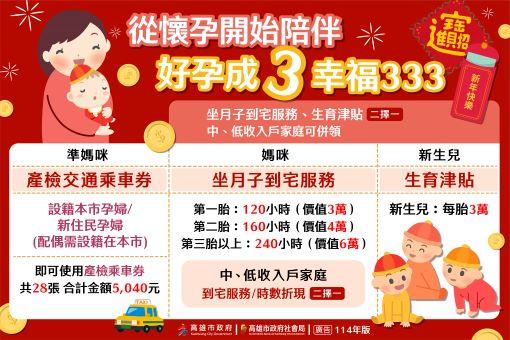 【記者林秀雲/高雄報導】高市府為讓在地青年敢婚、願生、樂養,以「津貼補助」及「完善托育服務」多元並行,從懷孕到養育陪伴,體貼育兒家庭,營造友善育兒環境。率先全面補助設籍孕婦產檢交通補助,全市50家產檢醫療院所都能領取28趟次計程車資5,040元的交通乘車券,以保障孕期安全,乘車券可延長使用至寶寶出生後6個月,產婦回診或寶寶打疫苗都可以使用。發放生育津貼每胎3萬元,一般新生兒家庭亦可依胎次選擇換取價值3萬(120小時)、4萬(160小時)或6萬元(240小時)的『坐月子到宅服務』,並為照顧經濟弱勢家庭擴大照顧措施,經濟弱勢產婦可同時併領生育津貼及坐月子到宅服務補助。另配合中央0至6歲國家一起養政策,發放育兒津貼及托育補助,家長自行照顧未滿2歲兒童可申領育兒津貼每月5千元。送托公托中心中央公共化托育補助每月7千元。送托準公共居托人員(保母)或托嬰中心,中央補助每月1萬3千元,且已全面推動「線上申請」育兒津貼或托育補助,民眾透過線上在家也可以申請津貼補助喔!高雄市自112年起再加碼準公托育補助,送托準公共保母加碼補助日間托育每月1,600元,中央加高市共計補助每月1萬4,600元;送準公共托嬰中心加碼補助每月2,500元,中央加高市共計補助每月1萬5,500元,實質減輕家長育兒負擔,實踐政府與家庭一起承擔照顧責任的承諾。社會局表示,孩童成長發展需求要被重視,市府不僅快速增加公共托育機構及多元托育資源,公共托嬰機構布建已超越倍增達61處,115年達85處,在多處社會住宅規劃增設公托機構,加緊提升高雄市公共托育量能,並積極推動友善育兒措施,包括首創全國提供免費坐月子到宅服務、小夜型定點居家托育及24小時臨托服務,現已設置28處臨托服務據點。並設置24處親子館,提供育兒家庭親子活動、親職課程、教遊具與繪本等服務資源;另有2輛育兒資源車提供大岡山、大旗山地區定點定時或社區預約育兒巡迴服務,輸送育兒資源,希望讓家長能就近選擇彈性、多元的托育服務,減輕家長育兒負擔,打造高雄成為最適合養育孩子的幸福城市。更多育兒資源及補助資訊請至「雄愛生囝仔•FUN心育兒資源網」(網址:https://khchildcare.kcg.gov.tw/)查詢。