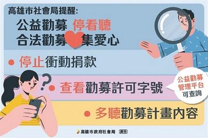 【記者陳冠豪/高雄報導】為增進各團體公益勸募相關知能、合法辦理勸募活動,及加強捐款資訊安全。高雄市社會局於(23)日辦理「113年度公益勸募說明會」,講授「資訊安全重要性及資安風險因應之道」、「公益勸募法規適用、申請案件實務解析及勸募實務樣態」,現場團體對於辦理勸募活動常遇問題踴躍提問,透過說明會加強捐款資訊安全及瞭解公益勸募相關規定,促進勸募團體合法募款集愛心,讓民眾捐款更放心。有些團體辦理公益勸募活動或於網站公開募款資訊及募款帳號,未申請許可涉違法勸募。依據公益勸募條例規定,勸募團體基於公益目的辦理勸募,必須事先提出申請,經主管機關許可後才可進行相關勸募活動;可發起勸募活動的團體包括:財團法人、公益性社團法人、行政法人、公立學校,且勸募團體收受捐款及捐物應開立收據、定期公開徵信及依指定之用途使用,勸募活動結束後,也必須公告募得財物使用情形,讓民眾瞭解善款運用狀況。高雄市社會局長謝琍琍表示公益勸募是許多團體推動福利服務的資源,合法的勸募可確保各界善款得以被妥善運用,讓各界愛心資源發揮最大的效益,勸募團體應依法申請勸募以免觸法受罰。民眾倘欲瞭解團體是否合法申請勸募可至衛生福利部公益勸募管理系統(https://sasw.mohw.gov.tw/app39/)查詢確認,以保障自己的捐款權益。