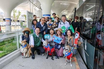 【記者洪崇欽/高雄報導】「和愛犬一起搭輕軌看展」不再是夢想!(19)日上午由高雄市動物保護處、高雄捷運公司、高雄市政府捷運工程局與內惟藝術中心共同舉辦「好伴車車~狗狗藝文輕旅行」,首度開放輕軌車廂讓20組毛孩家庭搭乘,毛小孩毋須裝在籠箱裡,可以全程落地,自在地跟著飼主一起欣賞沿途風景,還一同進入內惟藝術中心欣賞藝文展覽。市府秘書長郭添貴表示,4月22日是世界地球日,這次與高雄輕軌合作,以尊重及愛護動物為主題,除了鼓勵市民搭乘綠色運具外,透過「好伴bàn車車」藝文遊程專車,促進高雄觀光與寵物相關產業,讓高雄成為寵物藝文友善城市。來自20組毛孩家庭的大大小小狗狗們,一致配戴高雄市動物友善品牌「伴bàn」圖樣的三角巾,全程穿著禮貌帶(或生理褲),在家人繫繩牽引下,依序在輕軌月台等車、上車、下車。隨著列車啟動,有的沉穩地陪伴在家人身旁,有的仰頭看著窗外沿途景色,有的瞇著眼、咧著嘴彷彿開心的模樣。不管乘車、參展、午餐期間,狗狗們都療癒十足,並引起眾人無數次歡笑!高雄市政府秘書長郭添貴上午特別來到內惟藝術中心站月台旁,迎接這批從駁二大義站搭乘輕軌專車而來的毛孩貴客,一「狗」票隊伍沿路自在漫步,進入內惟藝術中心參觀「可愛主義」的《名畫吉娃娃》特展,共同完成難得卻又生活化的「好伴車車-狗狗藝文輕旅行」,體現人狗相伴不只是想像,而是一種可行的選擇。農業局局長張清榮表示,為了讓本次活動能夠順利圓滿完成,參加活動的飼主們均需事先完成訓練課程、通過考試、取得認證,自主引導狗狗實踐外出禮儀,並隨時注意環境整潔,避免影響行車秩序與環境清潔,透過飼主的責任教育,扭轉社會大眾對於毛孩外出會造成髒亂、吵雜的負面形象,進而創造互相理解、尊重的城市氛圍,讓人狗外出相伴成為城市美好的景象之一。 郭添貴強調,大眾運輸工具的開放,對於動物友善理念的落實極具指標性意義,故本次活動結合多個公部門與動物行為訓練師等跨領域通力合作,高雄輕軌成圓除了是高雄新特色外,輕軌月台坡度、高度的結構設計對於人和狗狗也相對友善,未來希望透過輕軌的「線」,串連每個動物友善空間的「點」,逐步將高雄市編織成飼主能與寵物外出相伴的「面」。